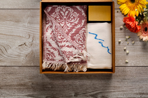 Box coppia di asciugamani in bamboo ricamati PESCI ROSA