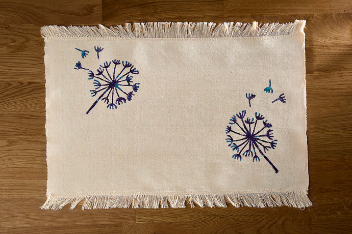Handbedrucktes Baumwoll-Platzset mit liebevoll gestaltetem Pusteblumenmotiv