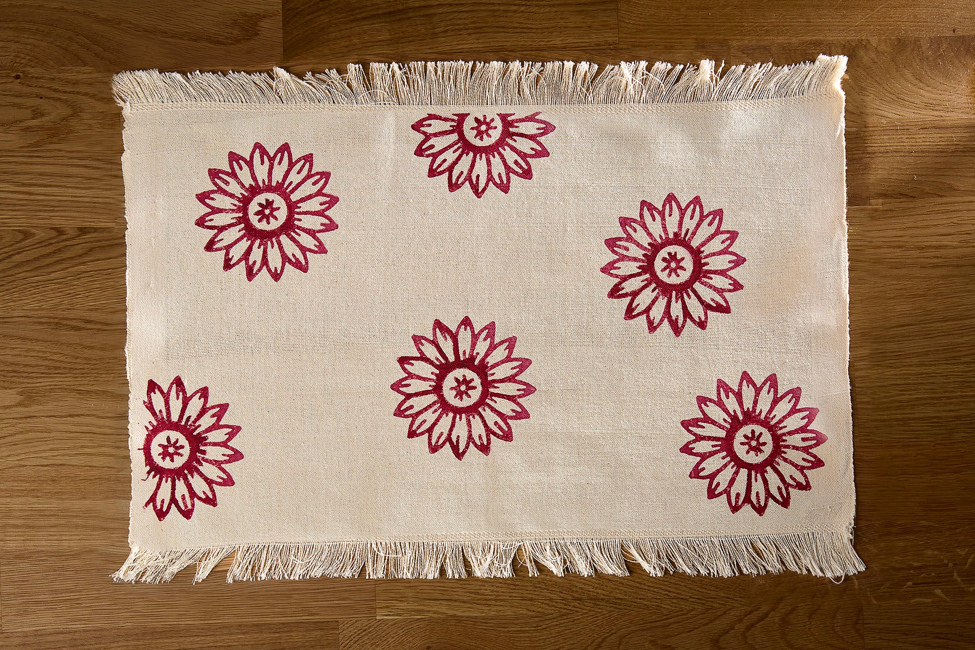 Handbedrucktes Baumwoll-Platzset mit liebevoll gestaltetem Blumenmotiv