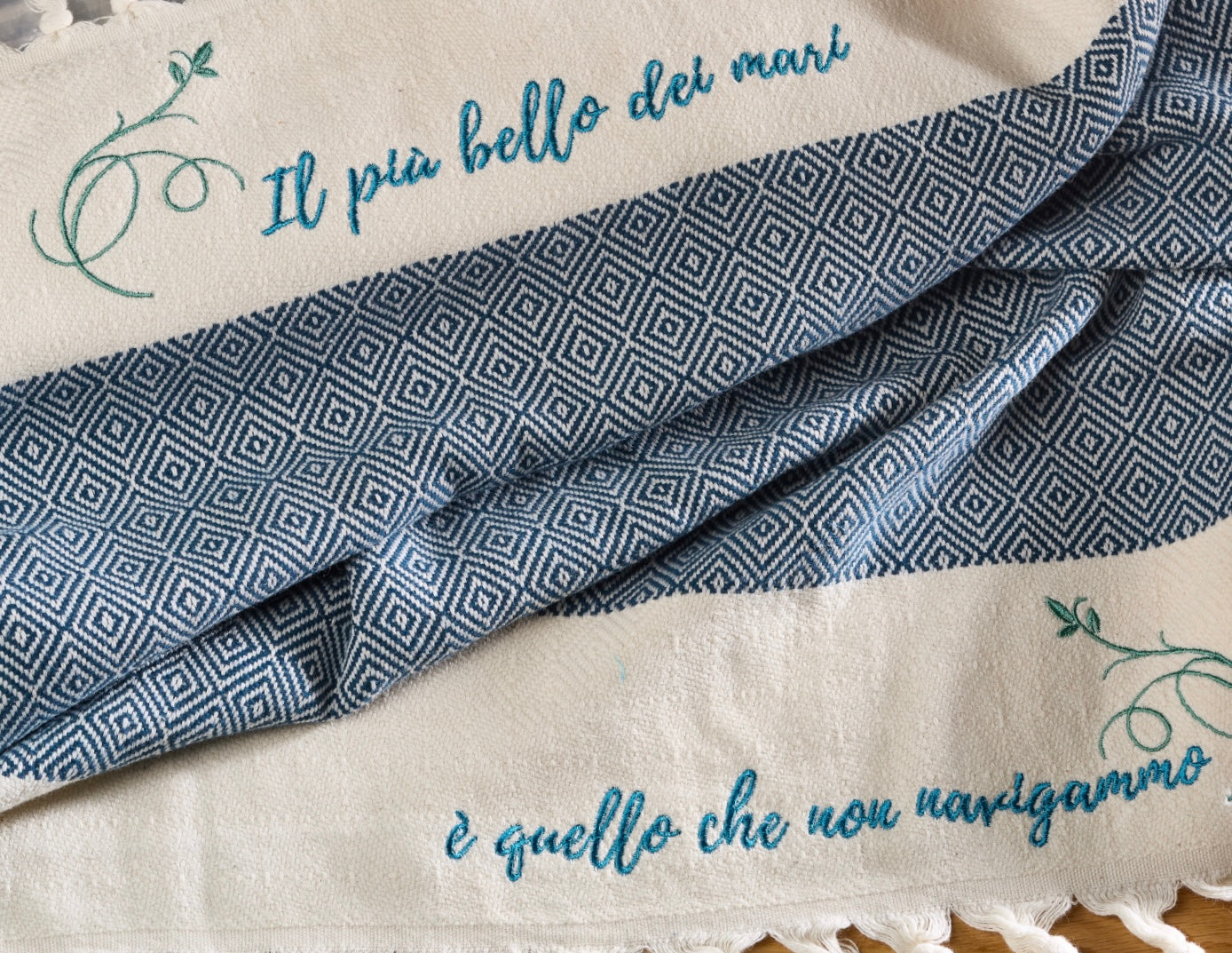 The cloth embroidered with one of the verses of the great poet Hikmet is part of the new Boho poetry collection born from the desire to impress on the fabric the most beautiful poetic thoughts related to love, friendship and travel.